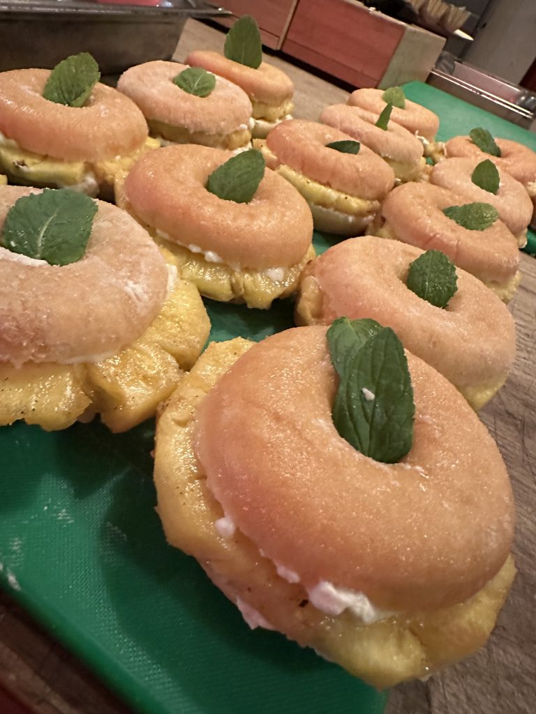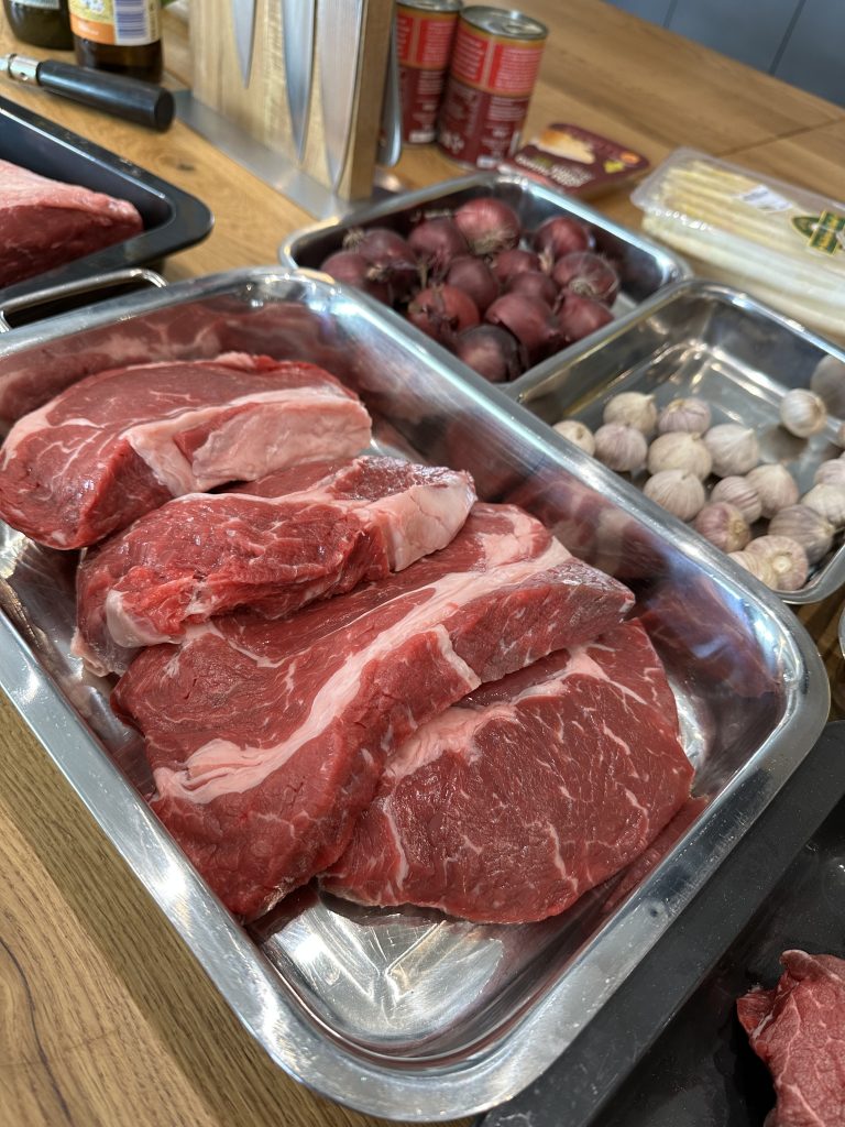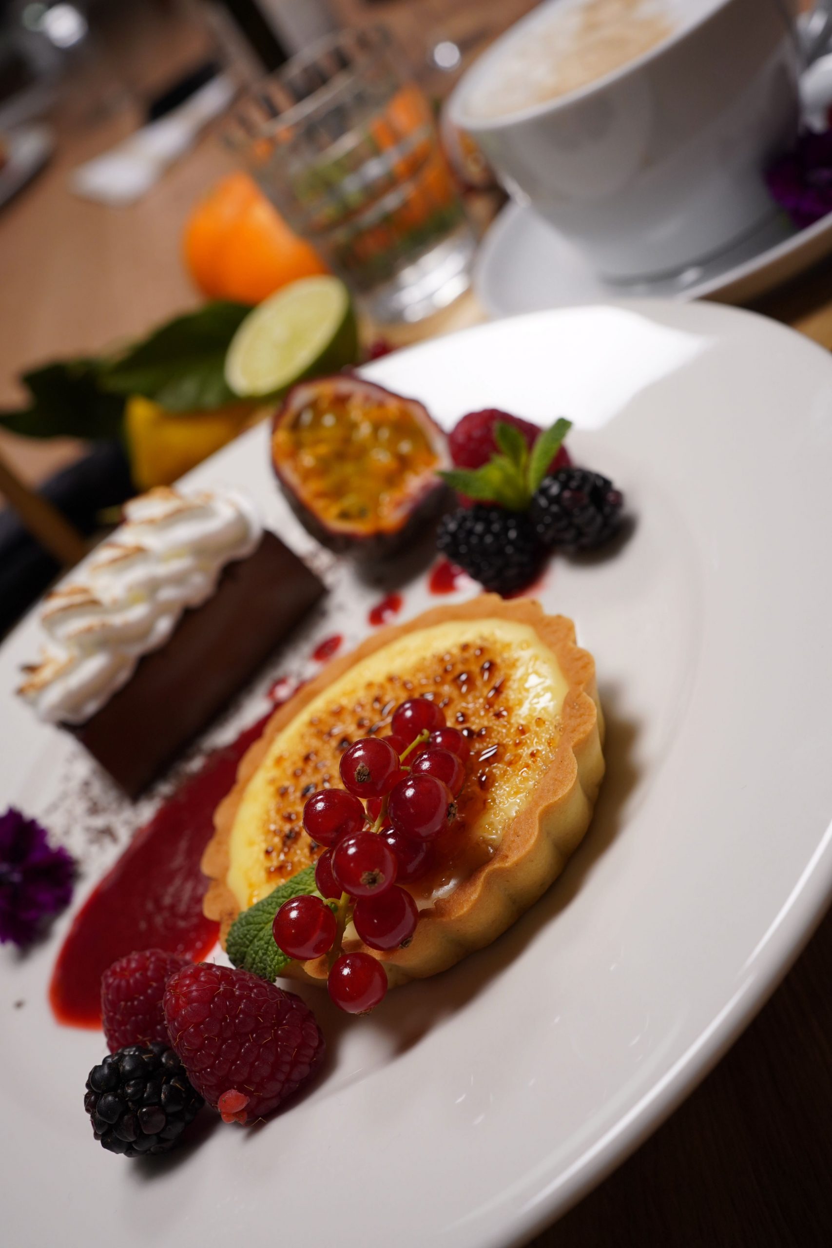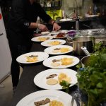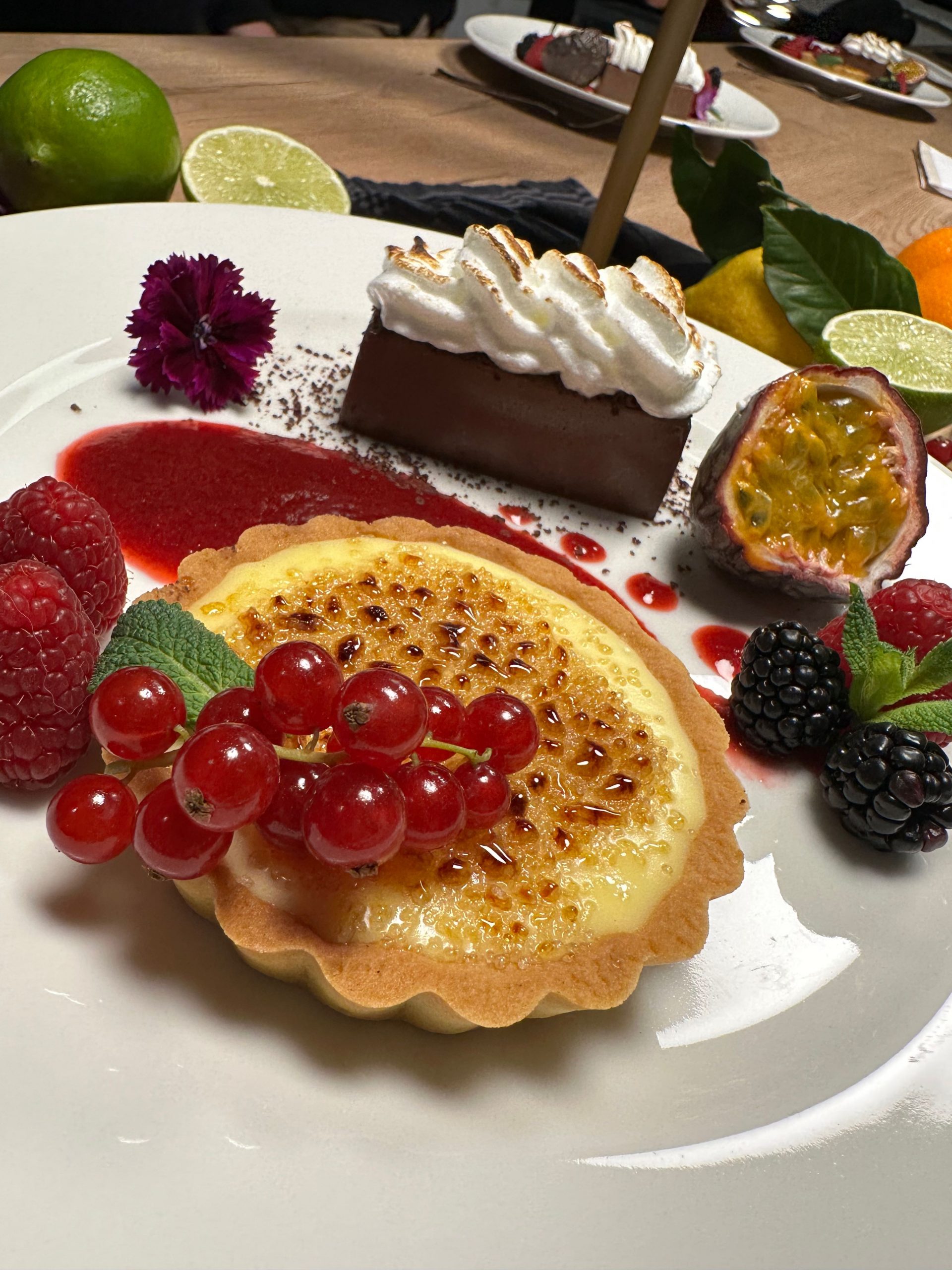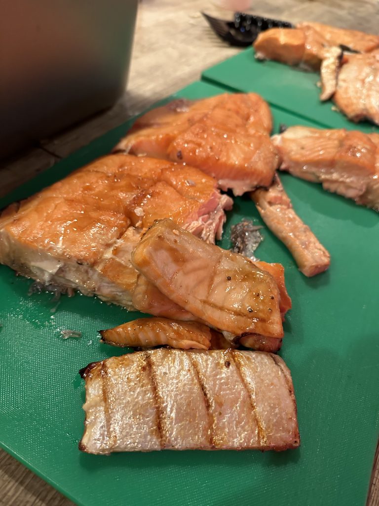 Auf dem Speiseplan war Hähnchen, Lachs, Rind, Beilagen und natürlich ein Dessert. Alles war dabei.